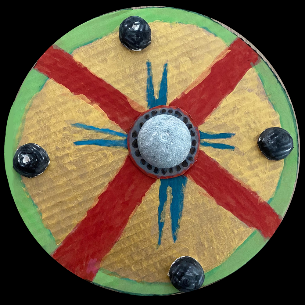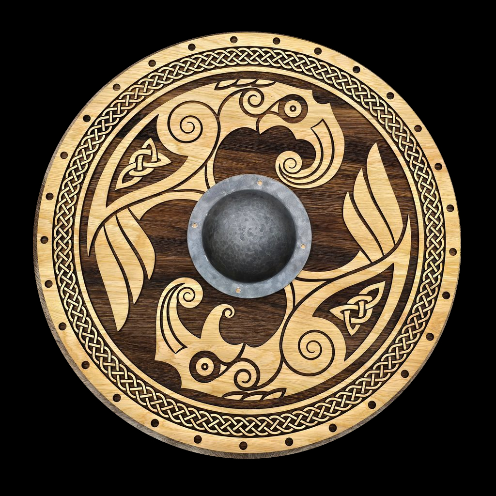Les Viking se protégaient avec des boucliers ronds que l'on peut voir alignés sur les bords de leurs drakkars lorsqu'ils prennaient la mer.