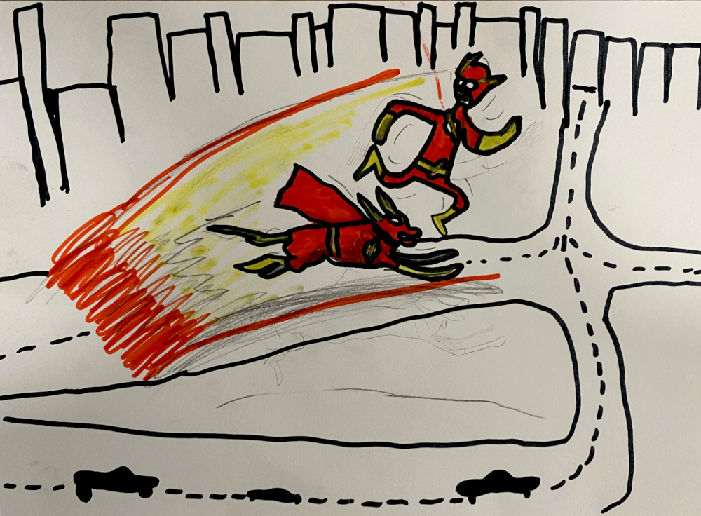 Initiation à une technique d'animation traditionnelle où chaque image est dessinée séparement - Nous nous sommes inspiré de la décomposition de la course du chien. Un rapide défilement des 7 images et le chien se met à courir! Nous avons choisi, soit de dessiner les 7 phases de la course, pour obtenir une animation soit de n'en dessiner qu'une une ou deux pour étudier une position particulière de la course du chien.
